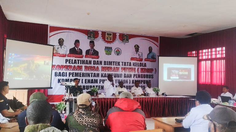 Deiyai SINAR BEMO – Bupati Deiyai, Melkianus Mote, ST, secara resmi membuka kegiatan Bimbingan Teknis (Bimtek) Tata Kelola Koperasi Merah Putih (KDMP) di Aula SMA Negeri 1 Deiyai pada Rabu, 15 Oktober 2025. Acara yang diselenggarakan oleh Dinas Pemberdayaan Masyarakat Kampung (DPMK) Kabupaten Deiyai ini melibatkan pemerintah dan pengurus KDMP dari 67 kampung se-Kabupaten Deiyai.